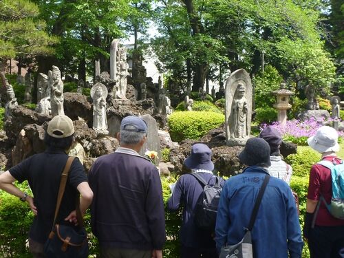 西東京市ウオーキング協会の5月のミニウオーキングが3日、東京都中野区であった。38人が参加し、西武新宿線沼袋駅から隣の野方駅までの史跡を巡った=写真は清谷寺の百観音霊場。 沼袋駅北口に集合し、午前9時50分ごろ出発。最初の目的地、禅定院(ぜんじ…