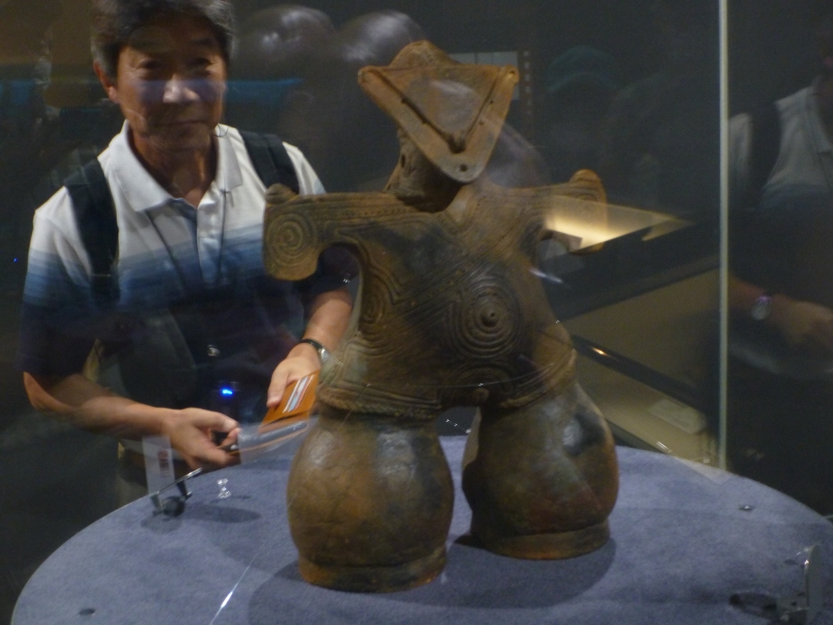 考古館では学芸員がレーザーポインターで穴や模様など細部の特徴を説明してくれたが、わからないことが多いようだ。縄文のビーナスはピンと糸で止めなくてもよいほど安定していることや、持ちやすくもあり、持つことを意識して作られたのではないかとの仮説も披露された。さて、それが縄文人の生活にとってどんな意味を持っていたのだろうと想像がかきたてられる。仮面の女神はボディーペインティングや入れ墨の可能性もあるという。